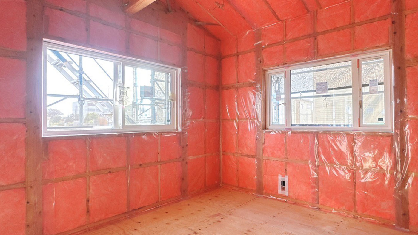 【断熱等級5】高性能グラスウールの高い断熱性と気密性で室内の温度を一定に保ち、冬は暖かく、夏は涼しく快適に過ごせます。